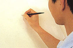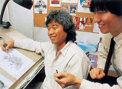アートディレクターがいる場合、鉛筆描きのラフを見ながら打合せ。雑誌等のカバーでは、イラスト以外の要素を想定しながらボリュームを考えたりするので、結構タイヘン。 ( 参考文献:アートオブ ススムマツシタ<アスキー>) |