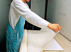 イラストレーションボードにマスク用のアプリケーションコートを全面に貼り付ける。中に空気が残らないように中央から押さえていく。 |