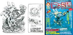 基になったイラストと色指示、印刷されたファミ通表紙(ファミコン通信 1994.3.18号)を公開しよう。是非、立体造形と見比べてみてくれ! |